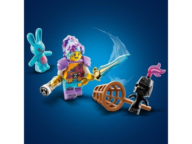 En detaljert minifigur av Izzie gjør den actionfylte leken ekstra livaktig. Izzie har tilbehør, inkludert en rustning, et sverd og et timeglass. Figurene av Grimspawn og en liten Bunchu følger også med, slik at barn kan gjenskape hele historien.