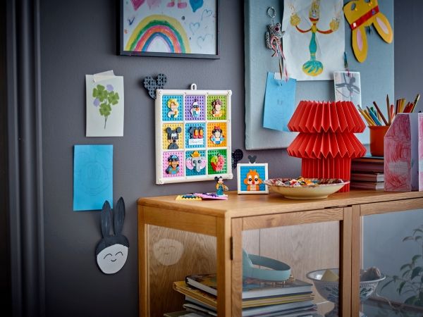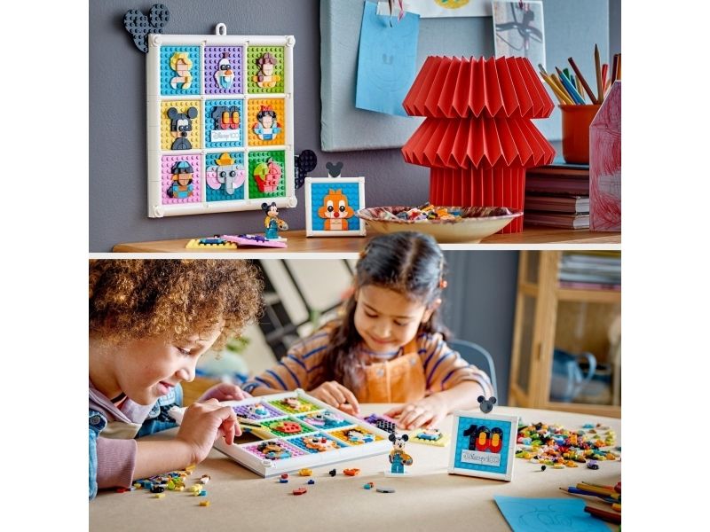 Gi fans og barn fra seks år et kreativt og inspirerende Disney-dekorsett med LEGO® ǀ Disney Ikoner fra 100 år med Disney-animasjon (43221). Settet inkluderer 12 8 x 8-plater, bilderamme, opphengselementer, mange fliser du kan bruke til å bygge inntil 12 ikoner samtidig, samt en eksklusiv LEGO minifigur av Disneys Mikke Mus og inspirerende byggeinstruksjoner. Med LEGO Builder appen får barn en enkel og intuitiv byggeopplevelse, hvor de kan zoome og rotere modeller i 3D, lagre sett og spore framdriften sin.