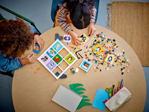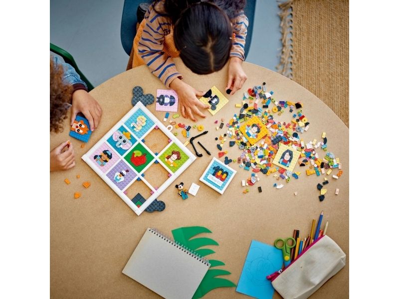 2. Grenseløs lek – settet inkluderer 12 8 x 8-plater, bilderammeelementer, mange fliser som kan brukes til å skape en full kolleksjon samtidig, og et instruksjonshefte med 72 Disney-bilder, inndelt i seks kolleksjoner på 12
