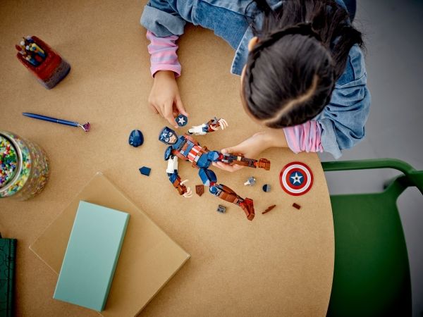 2. Marvels supersoldat – figuren består av 310 deler, har bevegelige skuldre, armer, hofter og bein og inkluderer karakterens ikoniske skjold, som kan festes til figurens hender eller rygg