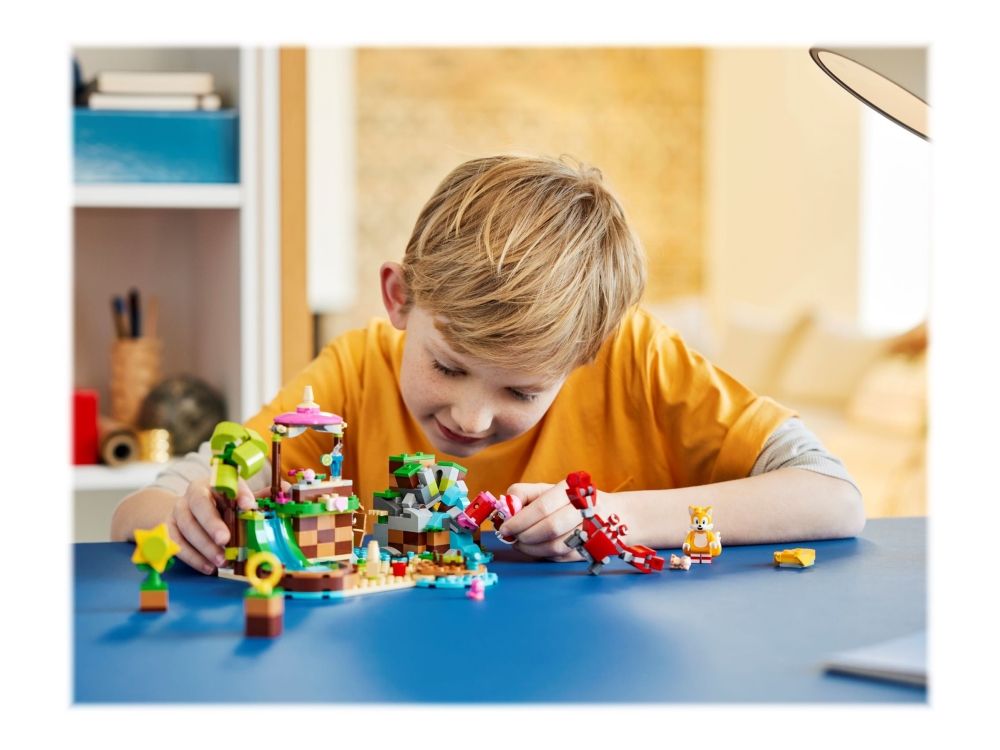 LEGO Sonic the Hedgehog™ lekesettene kombinerer fartsfylte eventyr med kreativ lek. Fans av «Det blå lynet» kan finne på scenarioer basert på Sonics eventyr. Når tiden er inne for et taktskifte, kan barn utfolde seg i fantasifull lek og passe på Sonics dyrevenner.