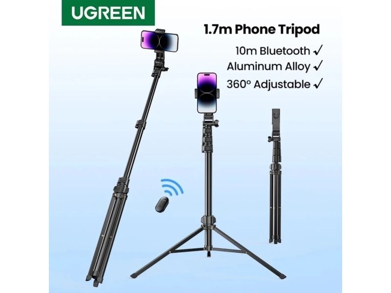 Brand- Ugreen. Model- 15062 . Compatible phone models- Universal. Suitable for devices of size- 4.6 - 7.2in. Connections- Bluetooth. Colour- Black. Length- 30.5 - 157cm. With remote control- Yes. Mandatory warranty- 24 mo. Warranty for legal entities- 12 mo.