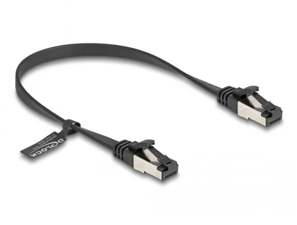 Delock - Koblingskabel - RJ-45 (hann) til RJ-45 (hann) - 25 cm - U/FTP - CAT 8.1 - uten hindringer, flat - svart