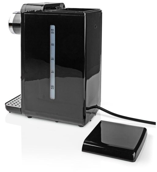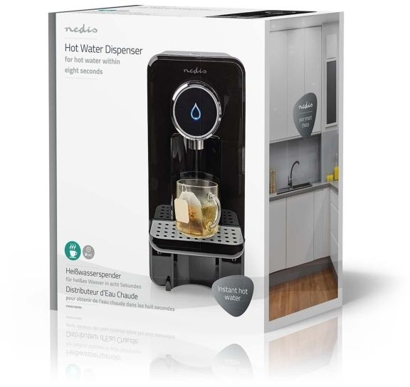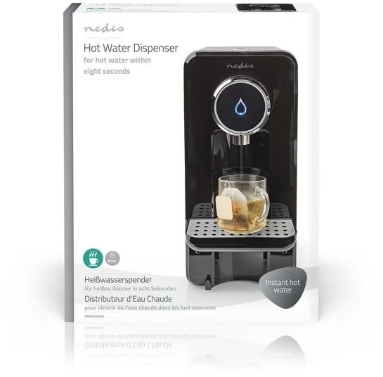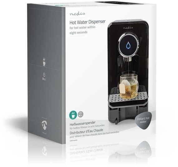 Varmvandsbeholder 2,5l, sort Varmt vand ved et tryk på en knap Vælg mellem kontinuerlig gennemstrømning eller kun en kop Tørkoch- og overophedningsbeskyttelse - til sikker anvendelse Klart vindue til vandstand og kontrollamper ved lav vandstand Aftagelig drypbakke med afdækning i rustfrit stål - for nem rengøring Kan indstilles i højden - til kopper med forskellige størrelser Kalkmonitor - viser, hvornår kalkrengøring er nødvendig Med filterkasse til optagelse af et valgfrit vandfilter (WF047) Med Nadis varmvandsbeholder kan du tilberede te, kaffe eller andre Varme drikke med kun et enkelt tryk på en knap. Vil du hurtigt fylde en 200 ml kaffe- eller tekop? Tryk derefter på tasten. Hold knappen nede i længere tid for at opnå en konstant strøm af kogende vand, for eksempel for at fylde en lille termokande på farten (maks. 500 ml pr. vandhane)