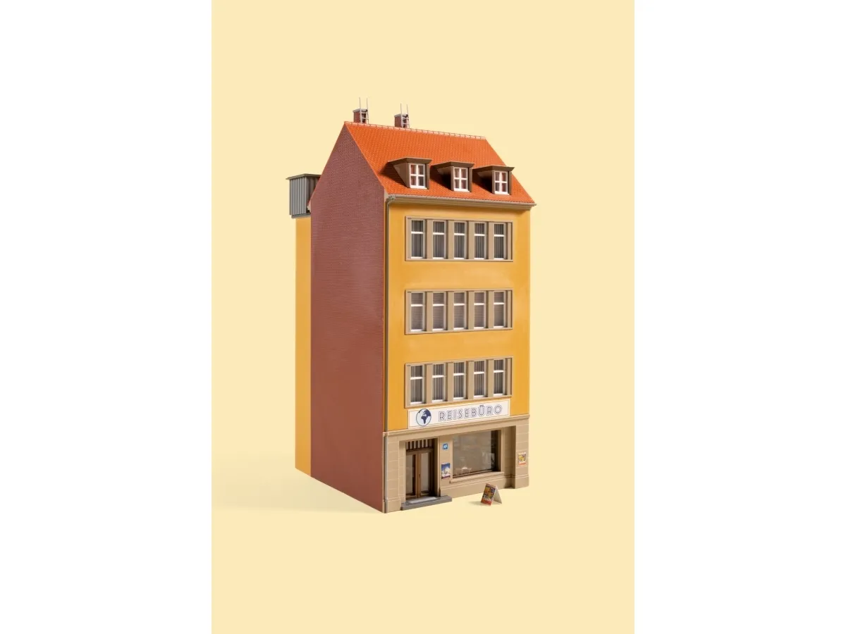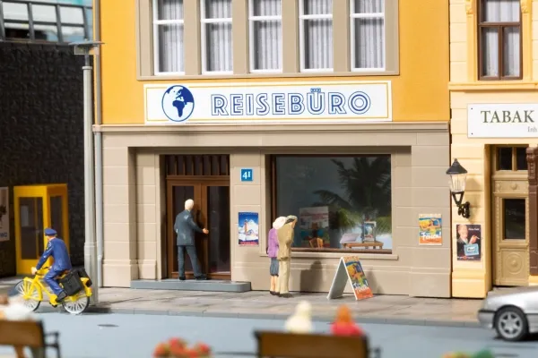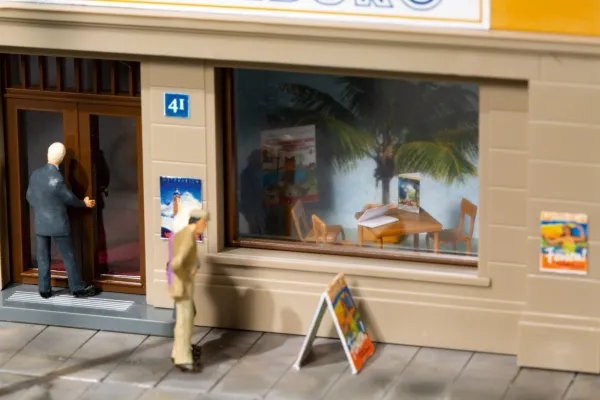 Også det nye rejsebureau byder ud over den klart strukturerede nye facade, bagsidedesign med elevatorskakt og i en butik med mulighed for udvidelse: Her er det også muligt under byggesætningen at supplere en lysreklame art. 58 102 LED-belysning rejsebureau. Det er klart, at begge bygninger også kan udstyres med de respektive andre reklame.