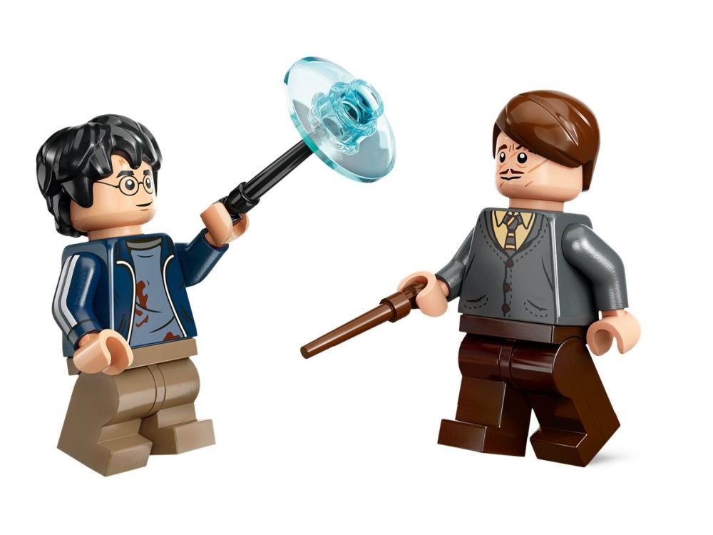 2. To LEGO® minifigurer – Remus Lupus og Harry Potter™ med tryllestav-tilbehørselement. Fest elementet til tryllestaven for å skape en trylleformel-effekt