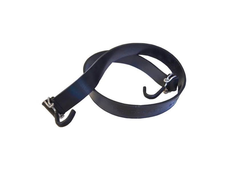Kraftig "HOLD-FAST" gummirem med plastbelagte og rustfrie J-kroge i begge ender.