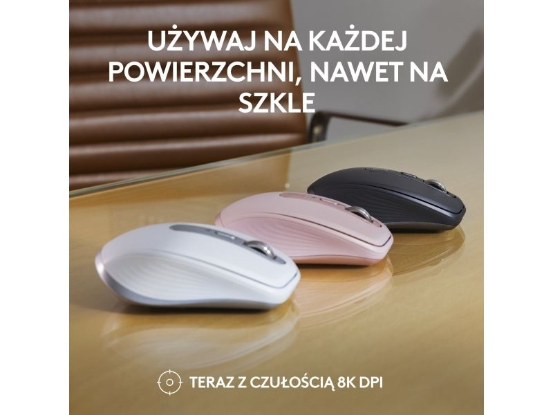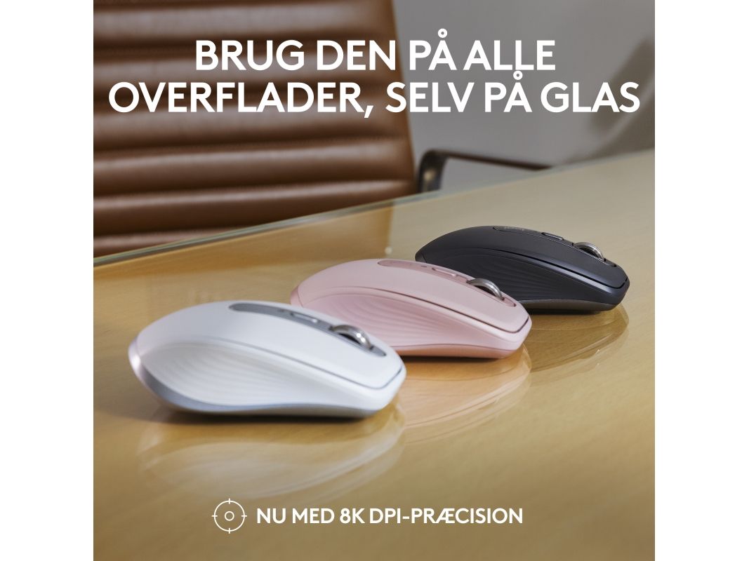 Opplev ytelsen og allsidigheten til MX Anywhere 3S, en ikonisk kompaktmus, nå med 8K DPI track-on-glass-sensor og stillegående klikk.