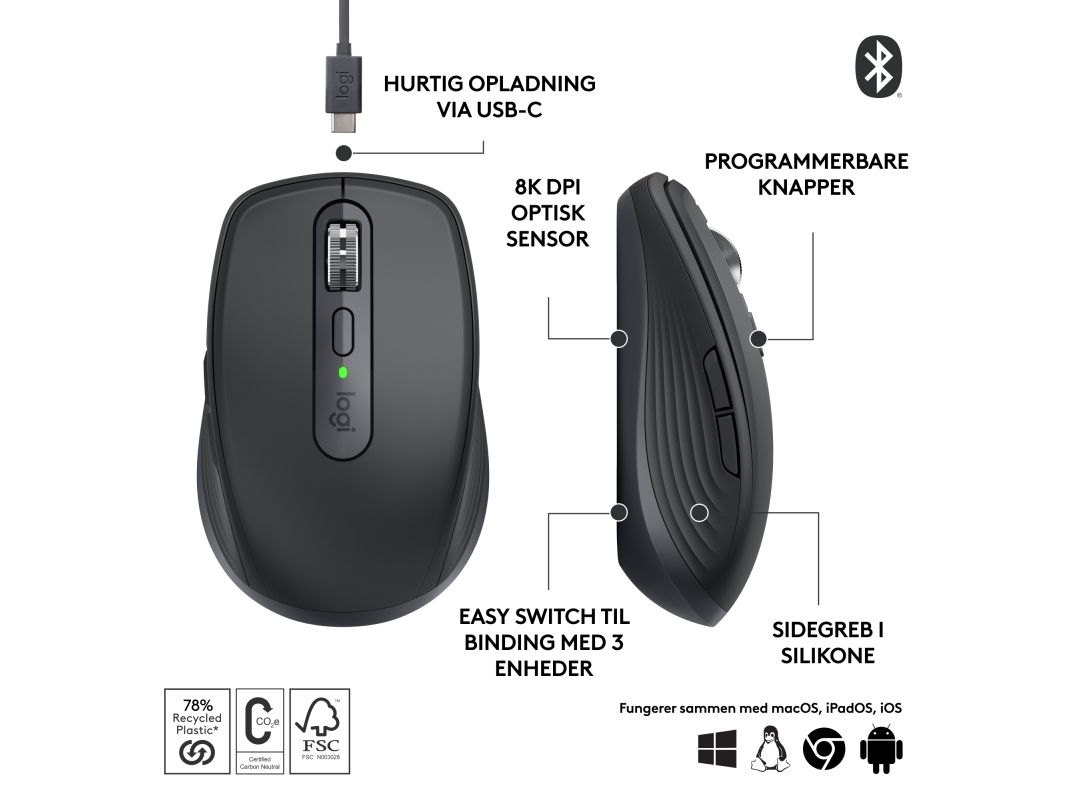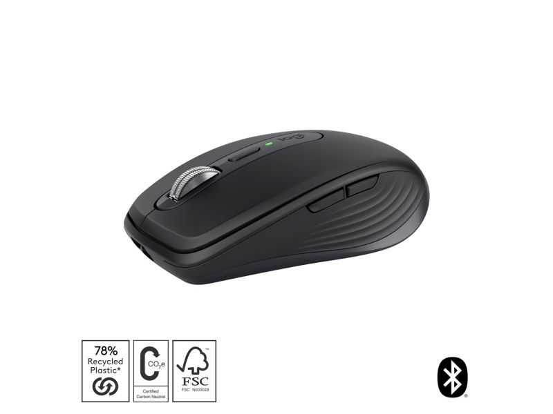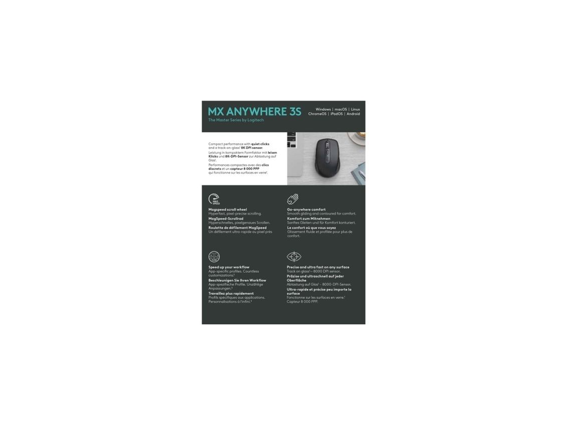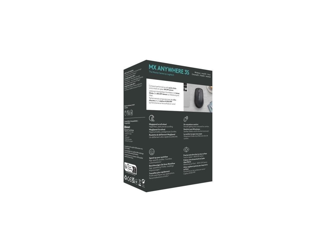 Logitech MX Anywhere 3S - Mus - optisk - 6 knapper - trådløs - Bluetooth - grafitt