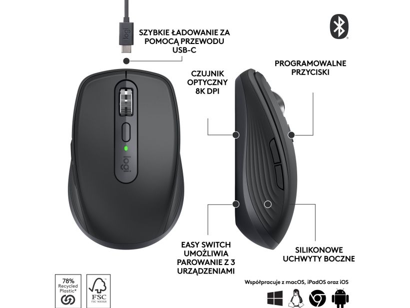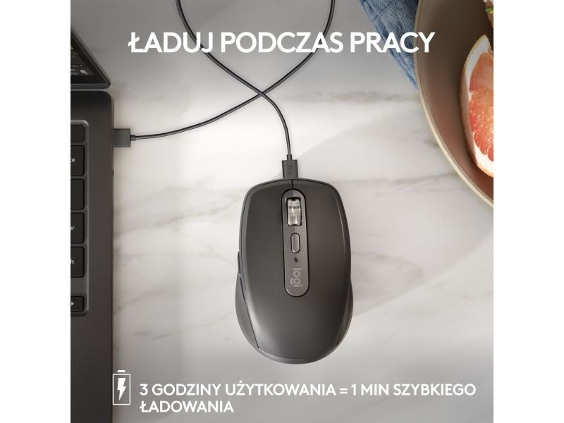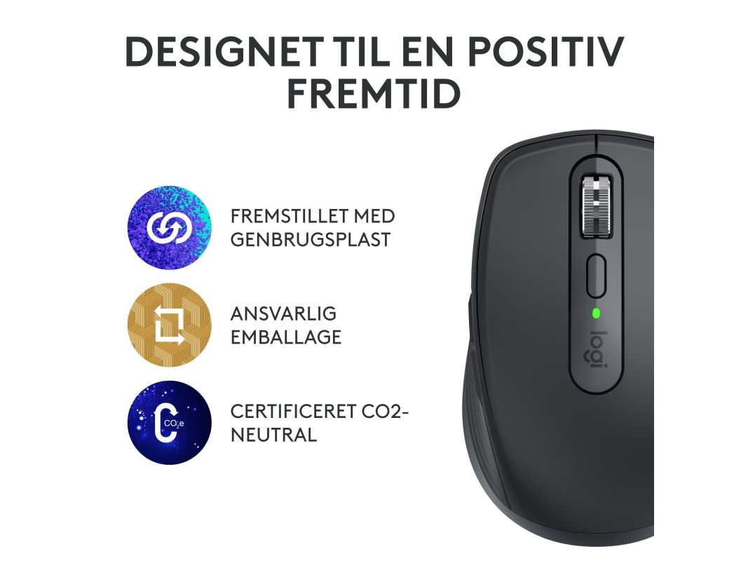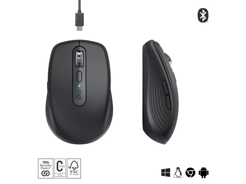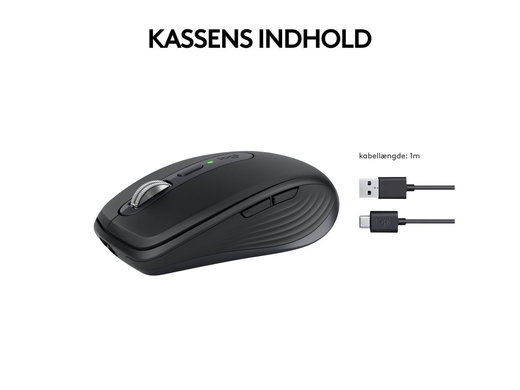 Logitech MX Anywhere 3S - Mus - optisk - 6 knapper - trådløs - Bluetooth - grafitt