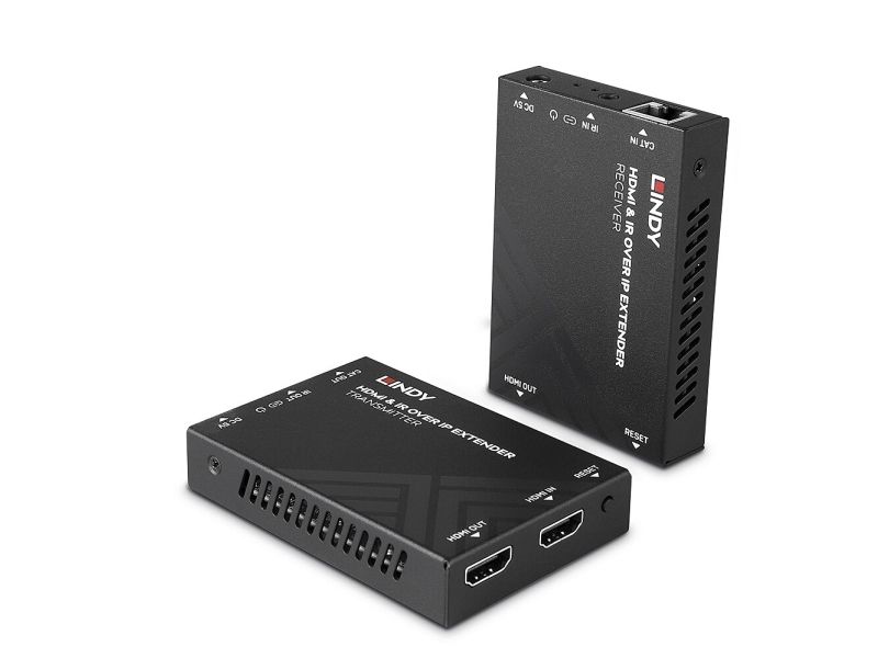 Please Note: Use a dedicated network specially for larger installations. The HDMI over IP Extender distributes in full 1080p resolution using H.265 video compression.Lindy HDMI and IR over IP Extender. Type: AV transmitter & receiver, Maximum resolution: 1920 x 1080 pixels, Cable types supported: Cat5e, Cat6. Connectivity technology: Wired. Operating voltage (transmitter): 5 V, Output current: 1 A, Operating voltage (receiver): 5 V. Receiver dimensions (WxDxH): 88 x 61.2 x 16.5 mm, Receiver weight: 530 g, Transmitter dimensions (WxDxH): 88 x 61.2 x 16.5 mm. Quantity per pack: 1 pc(s), Package width: 220 mm, Package depth: 130 mm