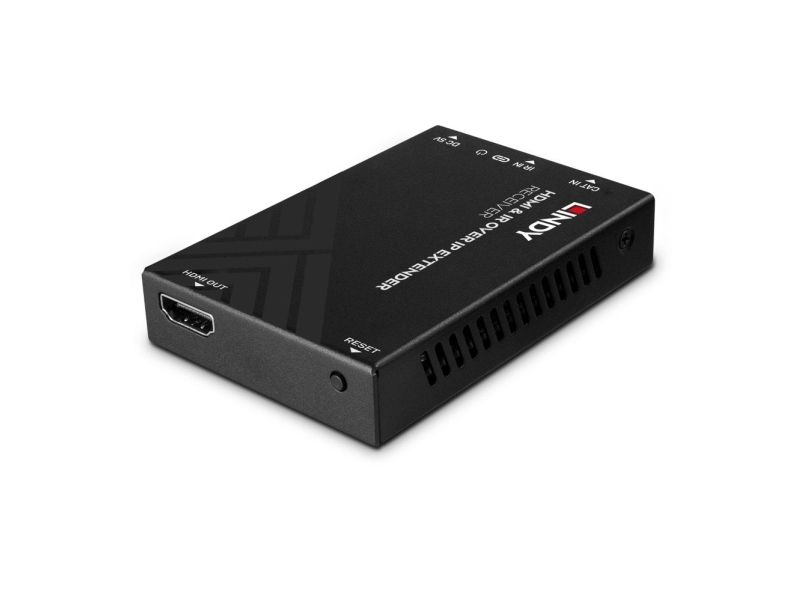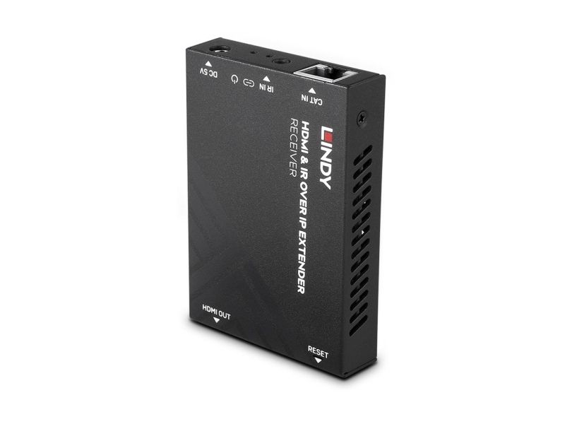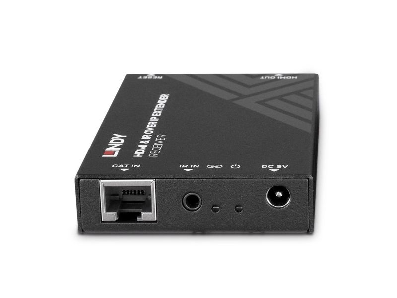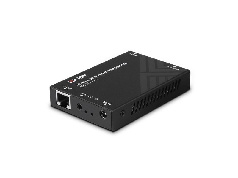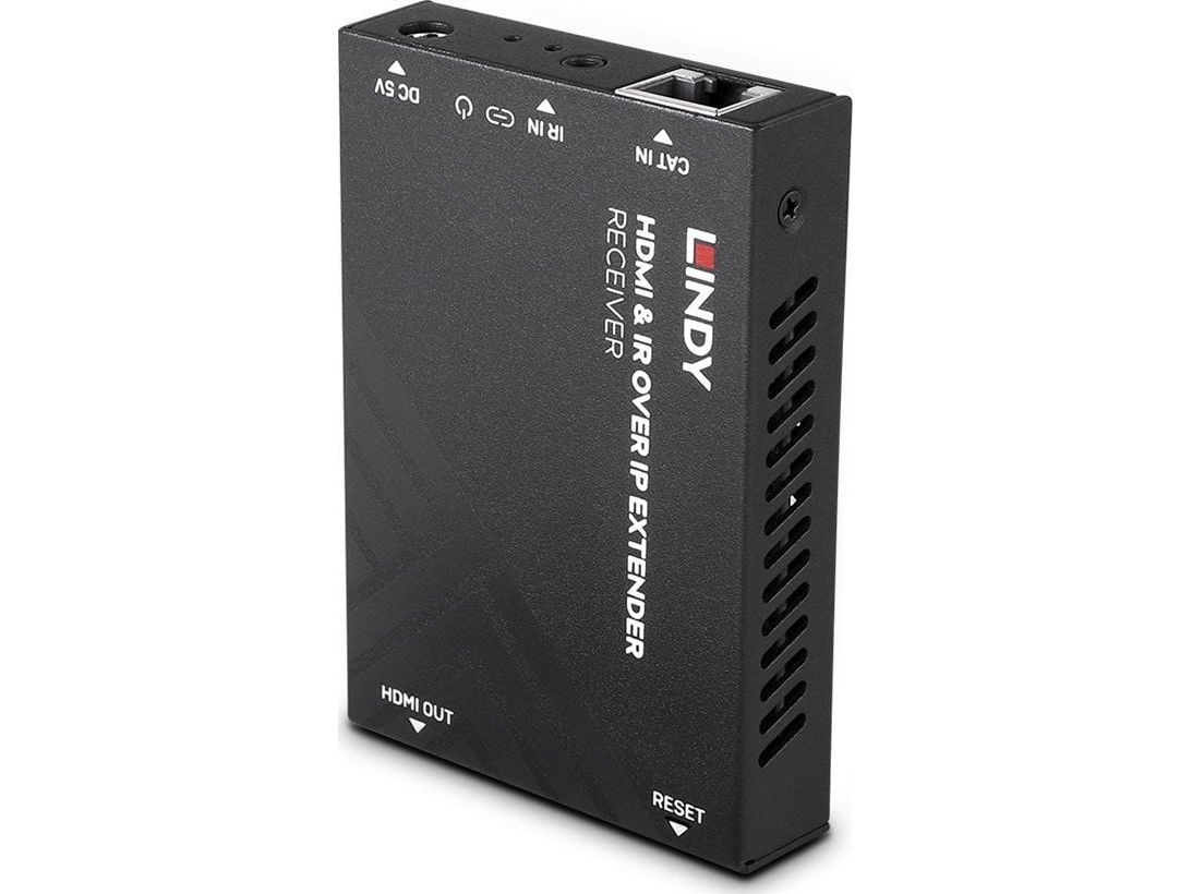 Please Note: Use a dedicated network specially for larger installations. The HDMI over IP Extender distributes in full 1080p resolution using H.265 video compression.Lindy HDMI and IR over IP Extender - Receiver. Type: AV receiver, Maximum resolution: 1920 x 1080 pixels, Cable types supported: Cat5e, Cat6. Connectivity technology: Wired. Power source type: DC, Operating voltage: 5 V, Output current: 1 A. Width: 88 mm, Depth: 16.5 mm, Height: 61.2 mm. Quantity per pack: 1 pc(s), Package width: 146 mm, Package depth: 65 mm