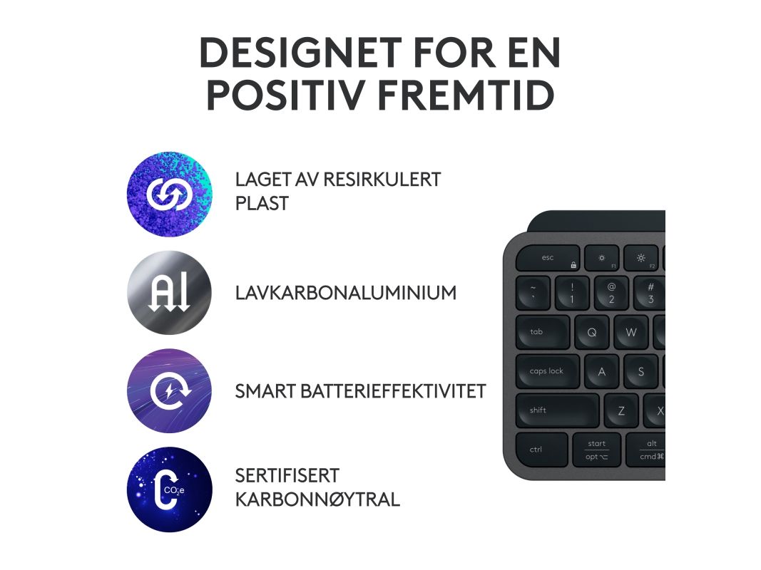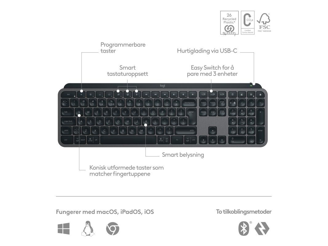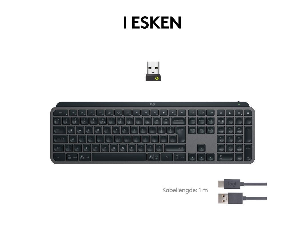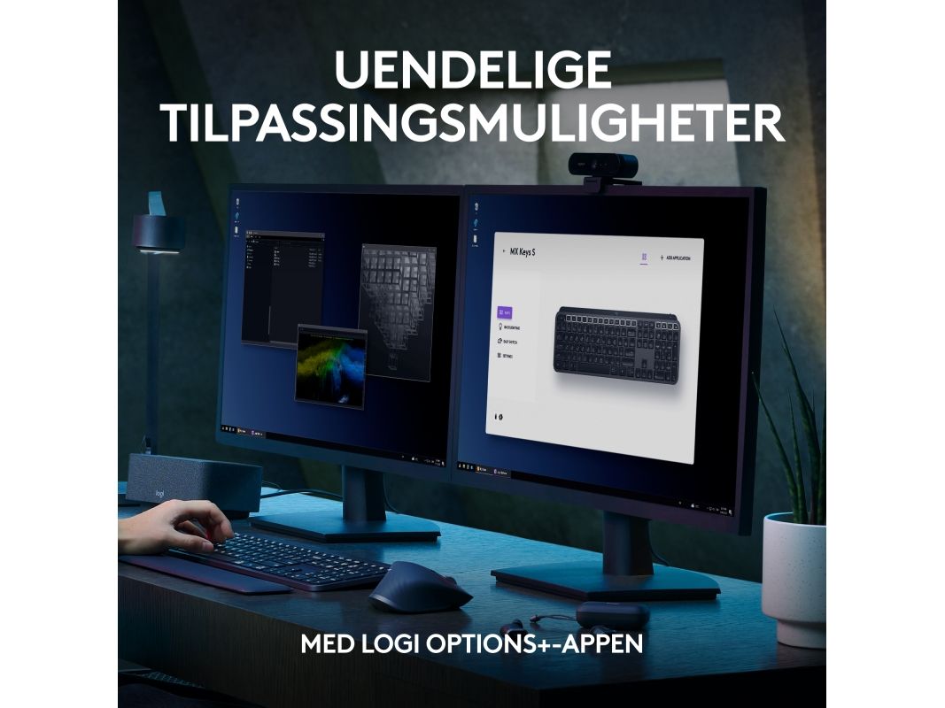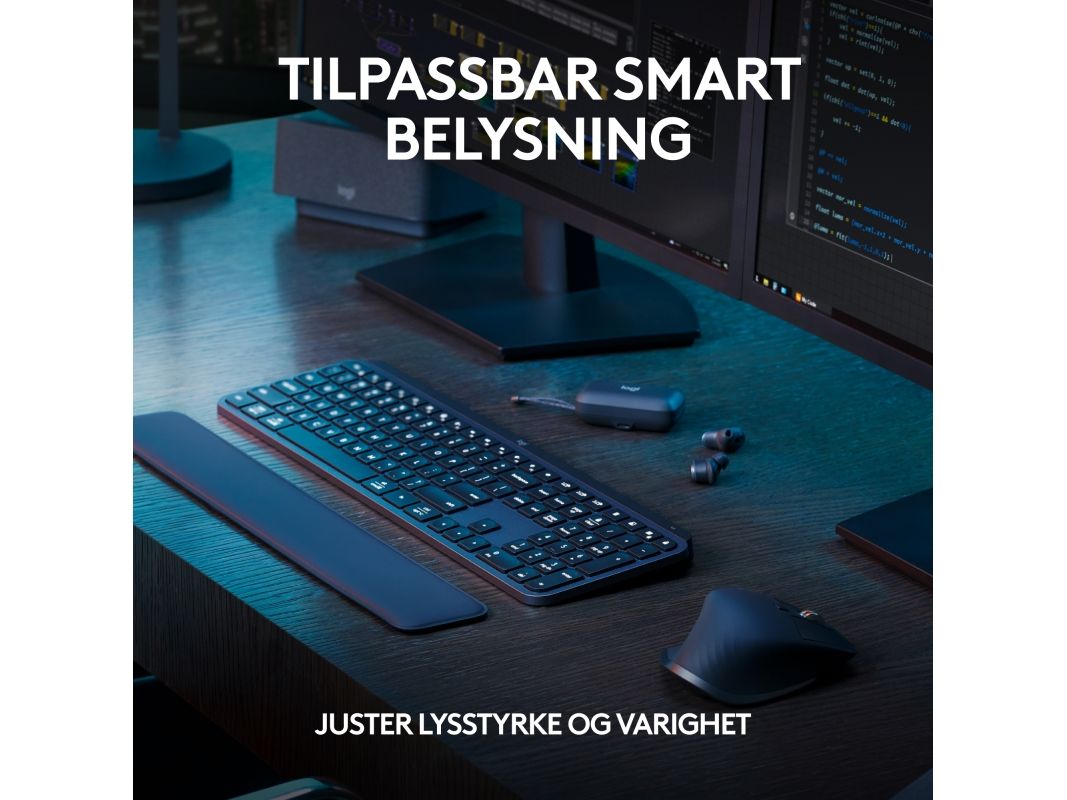 Logitech® | MX Keys S - Tastatur - bagbelyst - Bluetooth, 2,4 GHz - Nordisk layout - Grafitt
