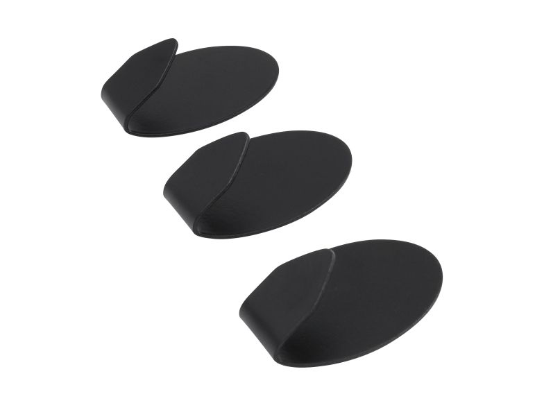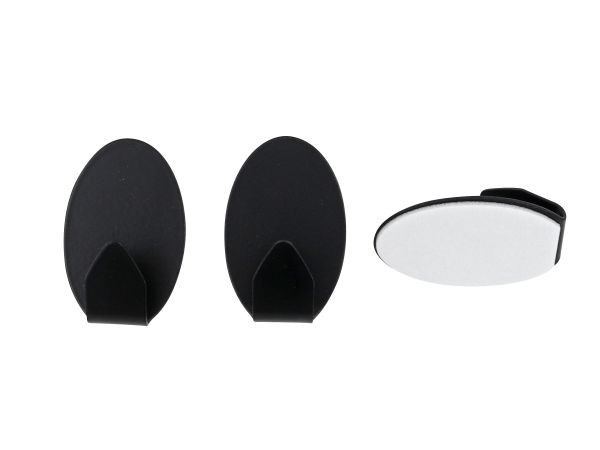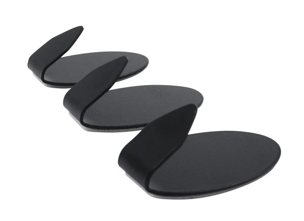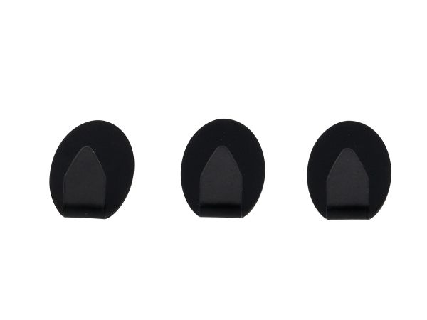 Højde: 37 mm Bredde: 27 mm Antal: 3 stk. Montering: selvklæbende Materiale: pulverlakeret stål Farve: sort Belastning: maks. 1 kg