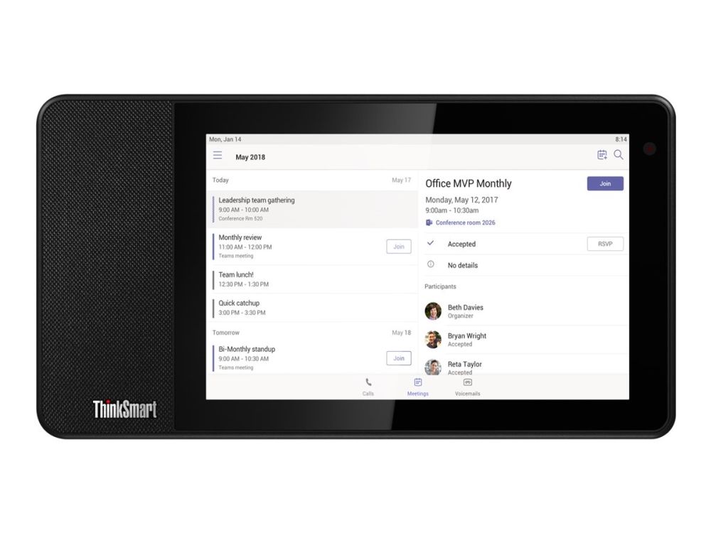 ThinkSmart View er en smart samarbeidsenhet som betjenes fra den enkelte arbeidsplass og tar seg av administrative oppgaver som forbruker PC-ressurser. Enheten brukes sammen med en PC til å "splitte og herske" slik at du kan benytte PC-en til produktivt arbeid, og ThinkSmart View til administrative oppgaver. Se på den som en personlig produktivitetsassistent på jobben.