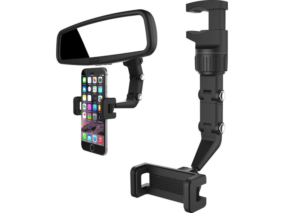 Justerbar bil bakspeilholder for smarttelefon, svart
