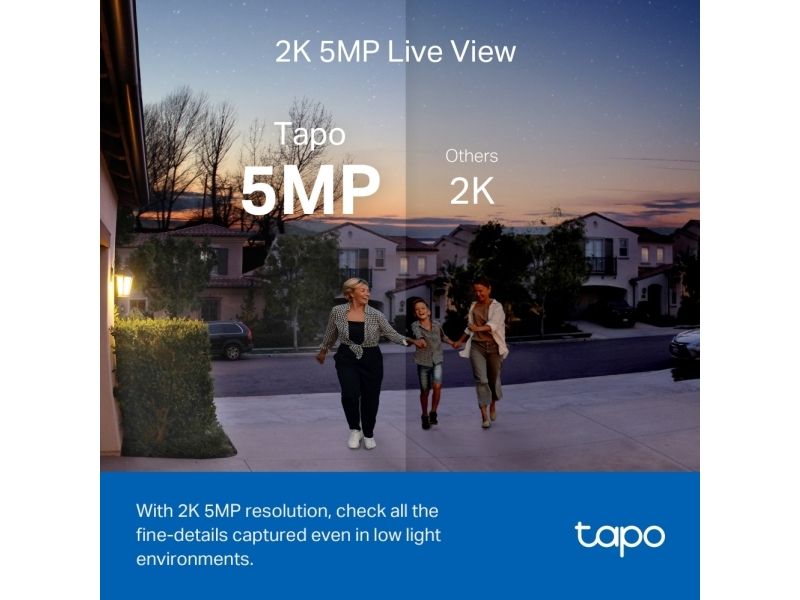 Always know what happens in front of your door through the Tapo app. With the starlight sensor and 2K 5MP resolution, check all the fine-details captured even in low-light environments.