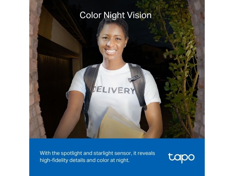 With the embedded spotlight and starlight sensor, Tapo D230S1 reveals high-fidelity details and color at night.