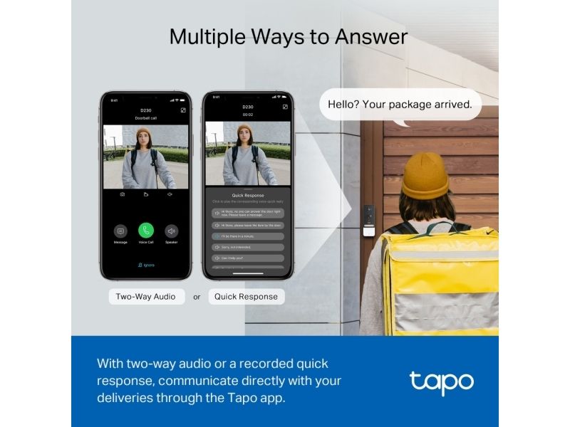 With two-way audio or a recorded quick response, communicate directly with your deliveries through the Tapo app.