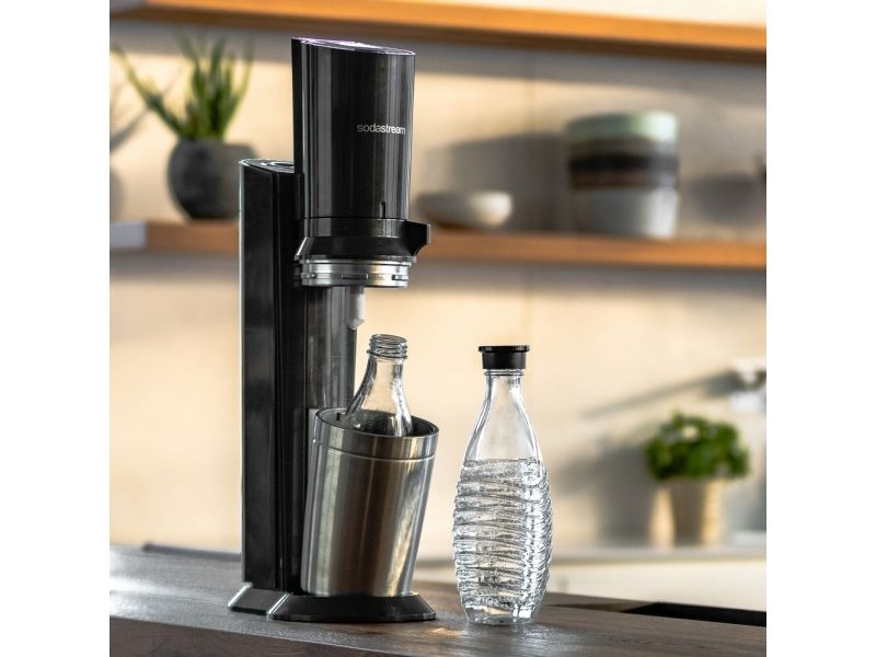 SodaStream Crystal 3.0. Housing material: Metal, Stainless steel, Product colour: Black, Compatible products: SodaStream 60 L PINK. Width: 155 mm, Depth: 260 mm, Height: 440 mm. Carbonating bottle volume: 0.615 L, Bottle material: Glass, Carbonator charger capacity: 60 L