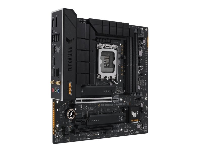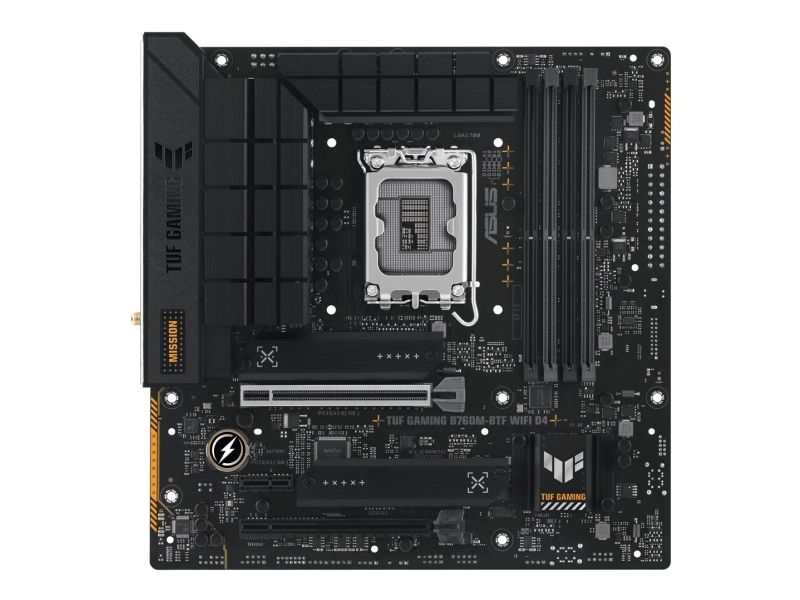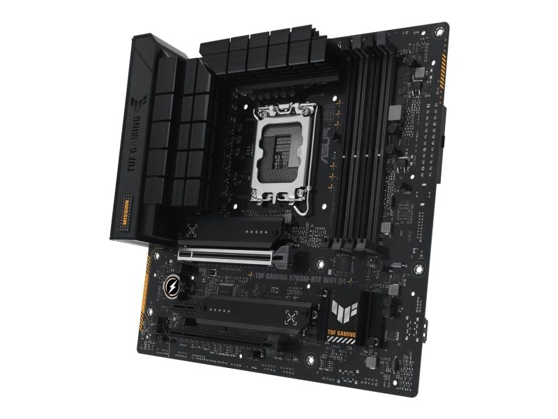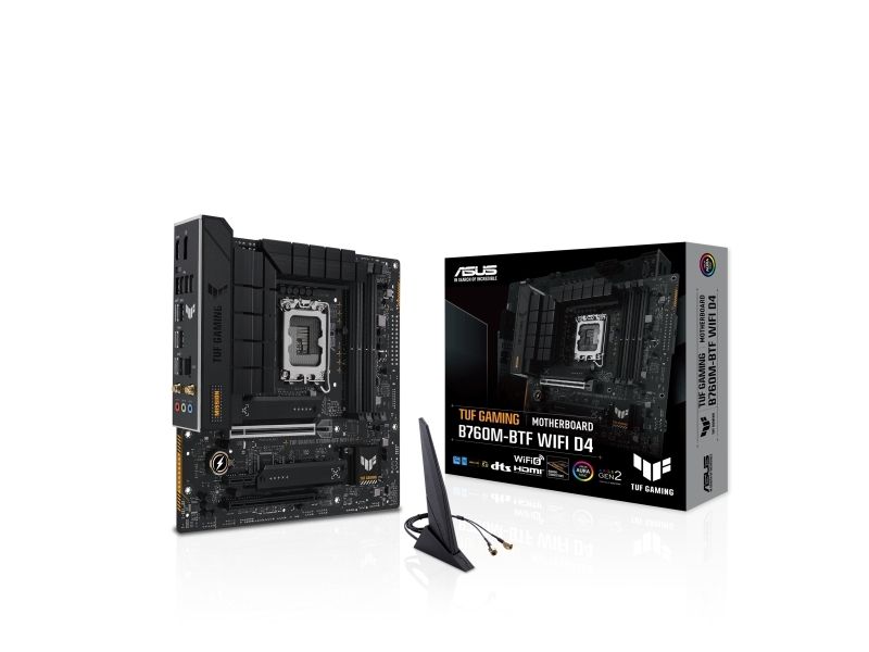 ASUS TUF GAMING B760M-BTF WIFI D4 - Hovedkort - micro ATX - LGA1700-sokkel - B760 Chipset - USB-C 3.2 Gen 2x2, USB-C 3.2 Gen2, USB-C 3.2 Gen 1, USB 3.2 Gen 2, USB 3.2 Gen 1 - 2.5 Gigabit LAN, Wi-Fi 6, Bluetooth - innbygd grafikk (CPU kreves) - High Definition Audio (7,1-kanals)