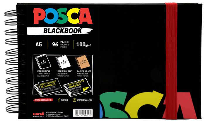 Notes/skitse bog fra POSCA i A5, sticker mulighed og forskellige papir typer, spiral ryg