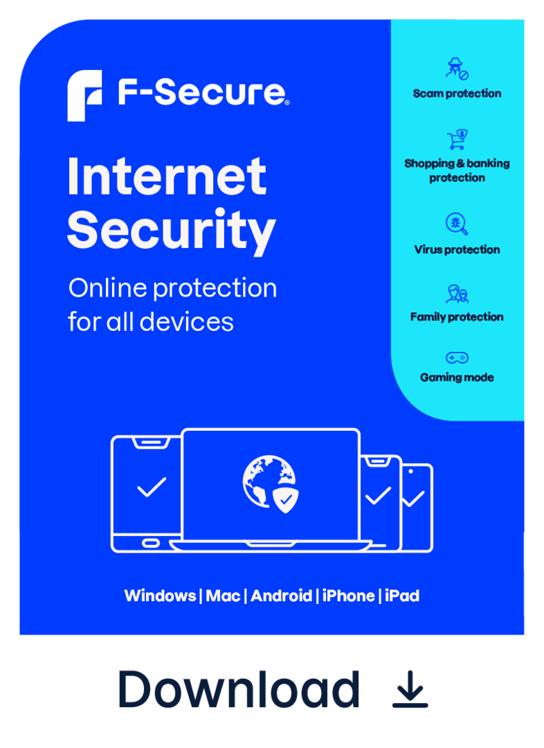 Relax and enjoy reliable antivirus protection. Today's advanced threats require advanced online protection that covers all your devices - from PCs, Macs, smartphones and tablets. F-Secure Internet Security protects you from malware and other threats with comprehensive features.