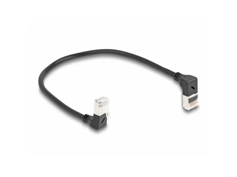 Delock RJ45 nettverkskabel Cat.6A S/FTP Slank 90° opp/ned vinklet 0,25 m svart