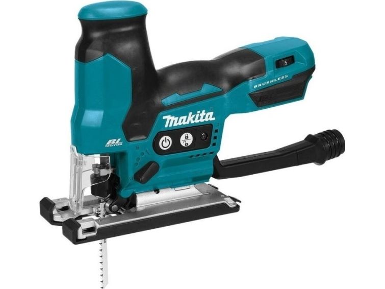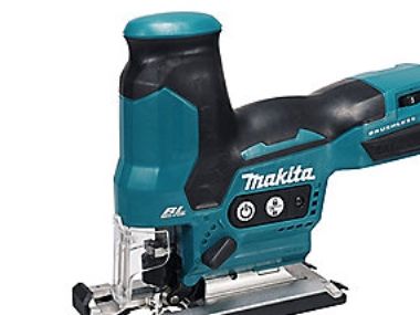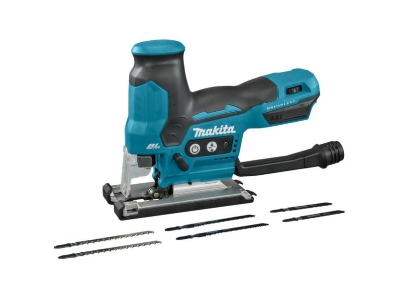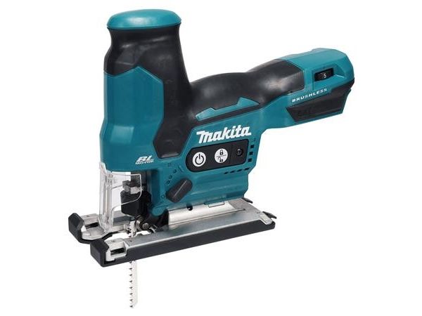 Kulfri stiksav med 3 pendulindstillinger og klingeskift uden brug af værktøj. Elektronisk tænd sluk knap på siden af maskinen.