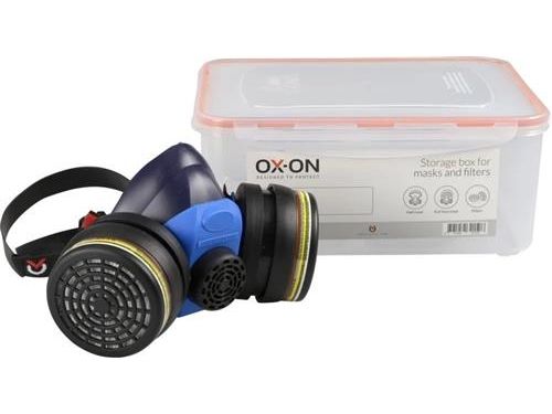 OX-ON Opbevaringsboks til halv- og helmaske samt filtre er den funktionelle og rummelige boks i høj kvalitet, hvor du kan opbevare din OX-ON maske og filtre. Boksen er fuldstændig støv- og lufttæt, hvilket betyder, at du forlænger dine filtres levetid. Boksen er desuden udført i transparant polypropylen, så det er nemt at se, hvad der er indeni. På siden af boksen er der en sticker, hvor det er muligt at påføre dit navn.5500 ml. Dimension: 29x22x12cm