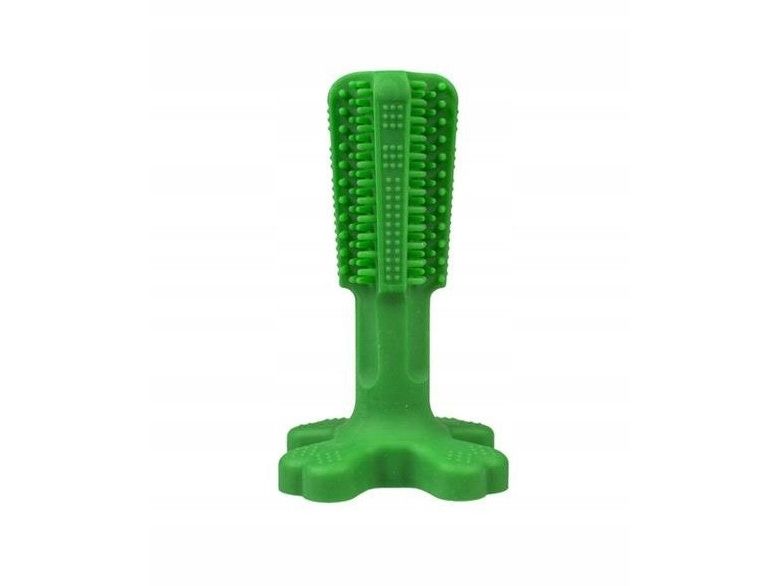 Dette legetøj renser tænderne helt ned til tandkødskanten og forhindrer plak og tandsten takket være de 2 typer riller. Den renser endda de svært tilgængelige bagtænder. Tandbørstelegetøjet er lavet af slidstærkt silikone med en behagelig myntesmag.