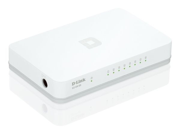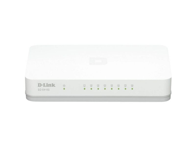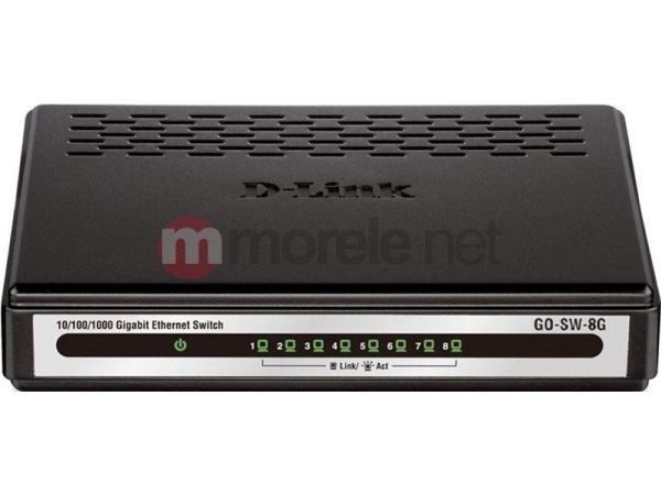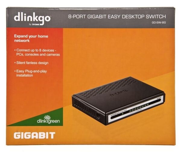 The GO-SW-8GE 8-port Gigabit metal desktop switch is part of D-Link's new series of SOHO devices that make use of D-Link's Green Technology, providing energy savings, reduced heat, and a longer product life without sacrificing performance or functionality. An energy-efficient power adapter (EnergyStar Level V qualified), minimized use of harmful substances (RoHS compliant), and recyclable packaging make this switch truly environmentally friendly. The GO-SW-8GE also helps you conserve energy automatically. The switch saves substantial amounts of power by cutting power usage for unused ports or ports connected to computers that have been shut down.