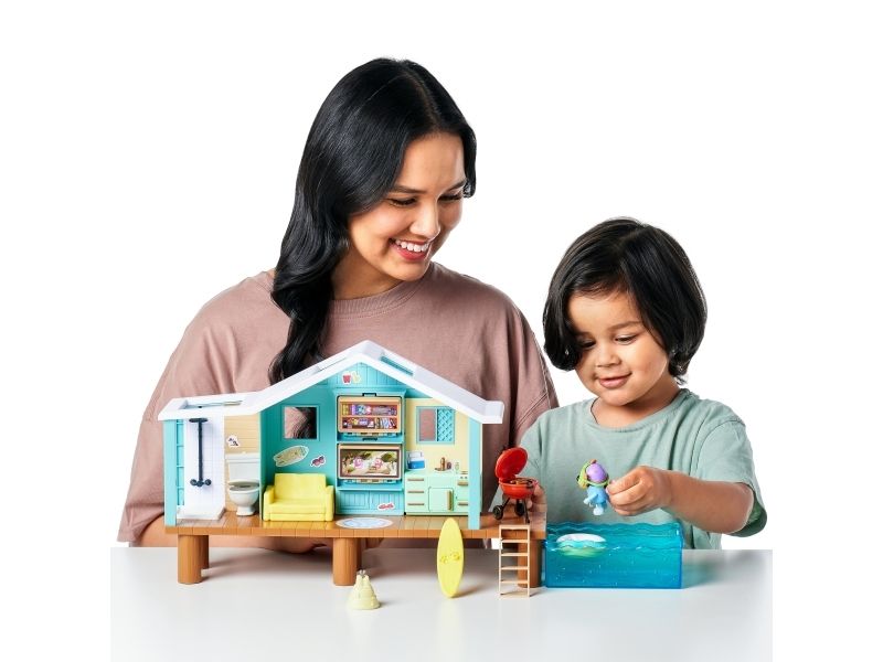 Bluey's Beach Cabin legesæt er fyldt med sjove funktioner, der gør det til en uforglemmelig ferie!