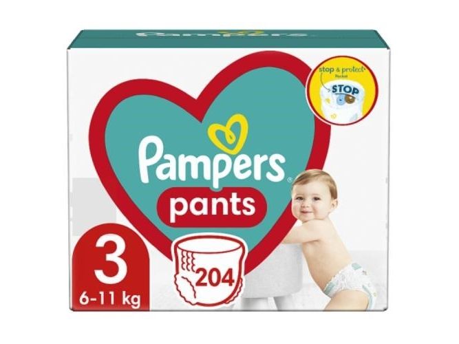 Pampers Pants sauskelnės-kelnaitės, 3 Dydis, 204 vnt., 6–11 kg
