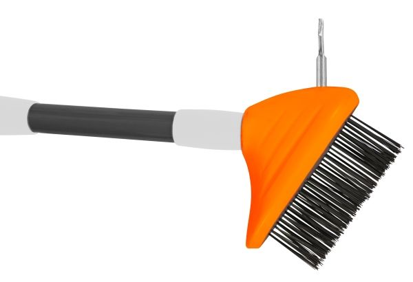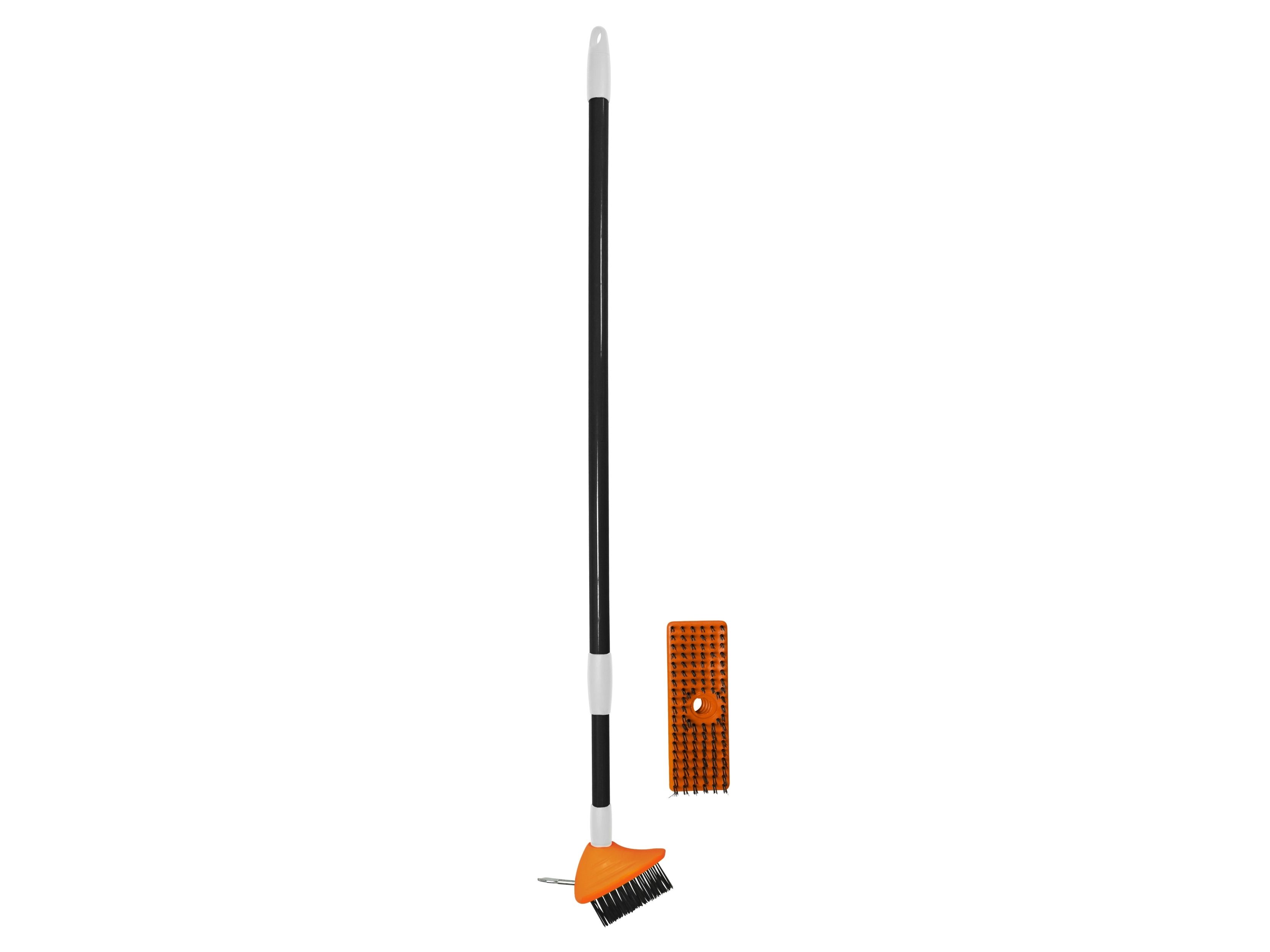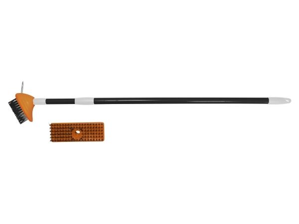 Fliserensesæt 3-1 med trinløst teleskopskaft, som gør det nemt at fjerne mos og alger fra træterrasser og fliser, mens den smalle børste er ideel til at fjerne mos og ukrudt i fuger.