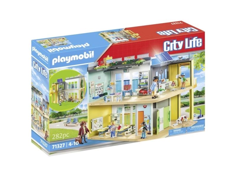 Stor skole I den store skole er der altid noget galt: I de forskellige klasseværelser lærer børnene spændende ting. Med den bevægelige, interaktive tavle og de forskydelige blade er glæden ved at lære meget. Der kan foretages observation af insekter og bier på den begrundede tagterasse. Den store skole har desuden et Toilet med adgang til kørestole og en Elevator. På den måde er bygningen tilgængelig for alle. Og hvad er det? was. Æder hunden da virkelig hjemmearbejdet op?
