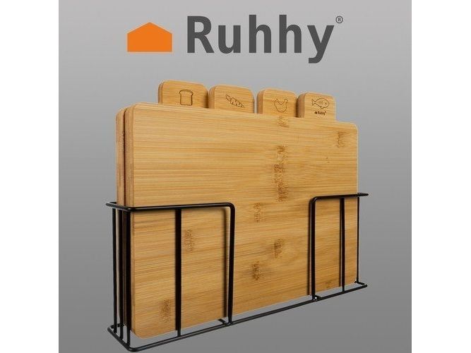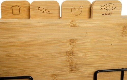 Bambukinių pjaustymo lentelių rinkinys su stovu Ruhhy 19338– 4 vnt.