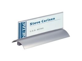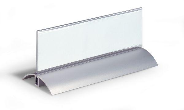 stilren bordskilte til konferencer, mødet, prisskilte, receptioner m v. Skilte i klar akryl, læseligt fra begge sider. Fod af aluminium. Et unikt bremsesystem i foden gør at selve skiltet altid holdes på plads. Indstik medfølger. Mål indstik: 61/122x210mm (HxB). Indstiksetiket på A4 ark til udskrivning i printer kan bestilles separat (Durable art nr. 146002). Design selv en personlig designet bordnavneskilte med gratis skabelon på www.duraprint.eu.