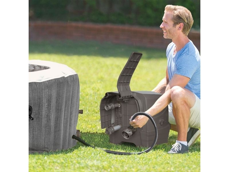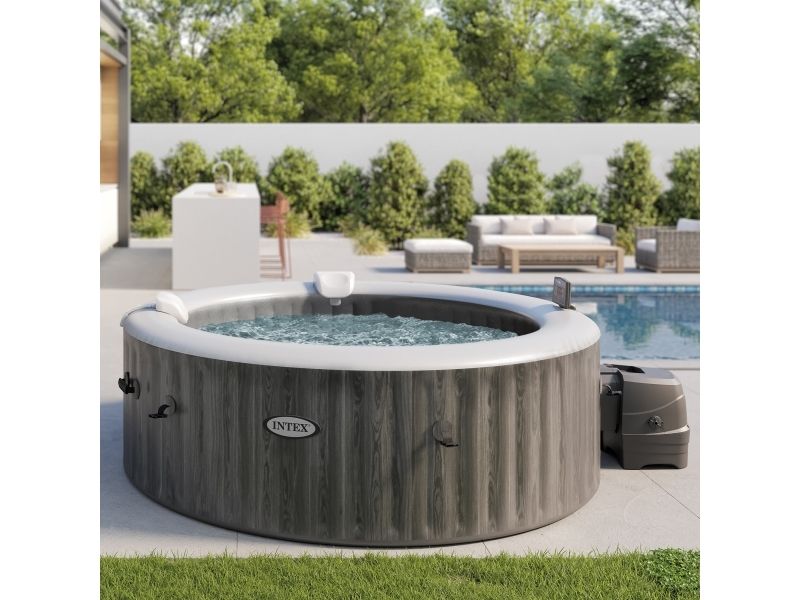 Kontroller alle spa-funksjoner via Spa Management-appen. For 4 voksne. Den ultimate spa-opplevelsen er like ved fingertuppene dine. Uansett hvor du er. Med Intex Link Spa Management-appen kan du nå kontrollere alle spa-funksjonene fra mobilen eller nettbrettet. Programmer bruken og vedlikehold av spaet eksternt via WiFi-tilkoblingen. Få luksusspastemning på terrassen med Intex Purespa. Fiber-Tech interior-konstruksjonen gir enorm stabilitet samtidig med å ha en behagelig overflate til en luksuriøs og forfriskende spaopplevelse. +140 høyeffektsboblemotorer garanterer en beroligende og avslappende massasje ved bare et enkelt trykk på en knapp på kontrollpanelet (en oppladning holder seg opp til 48 timer). Det er plass til 4 voksne. Inkluderer: - Intex PureSpa Greywood Deluxe - Intex Link Spa Management-appen - trådløst kontrollpanel - sette fast på toppen av spaet - 2 premium hodestøttere i skum - 1 flerfarget LED-lys - spamål: indre diameter 145 cm, ytre diameter 196 cm. Kan romme 795 liter.