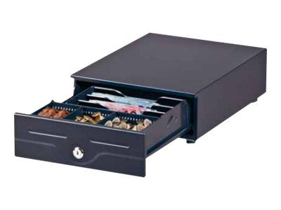 Incorporate the black K-4 elegantly into nearly any environment. For more stable placement, four plastic feet on the bottom of the drawer keep it in place. Thus, it is suitable for placing a monitor or a receipt printer on its smooth surface, without any worry. The 24 V standard interface for POS printers guarantees simple integration using the included 2 m cable.