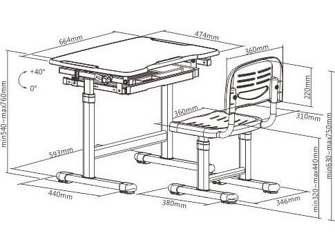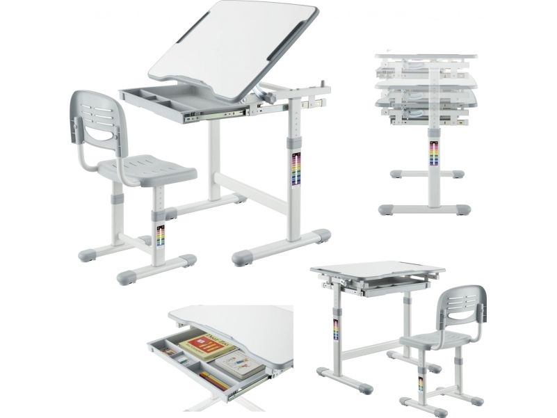 Mozos MOZOS DC-SET-GREY barnepult og justerbar stol for barn 2-12 år