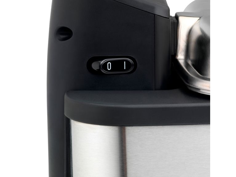 Denne frityrkokeren er unik: den filtrerer oljen praktisk talt av seg selv. Når friteringen er ferdig, slår du av apparatet og vrir knotten til "automatisk filtrering". Når oljen begynner å nedkjøles, føres den gjennom et filter og tømmes i oljebeholderen under. Dermed vil oljen alltid være ren og kan brukes om igjen mange ganger.
