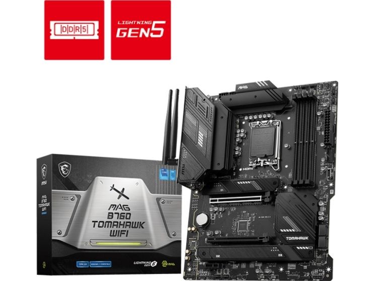 MSI MAG B760 TOMAHAWK WIFI - Hovedkort - ATX - LGA1700-sokkel - B760 Chipset - USB 3.2 Gen 1, USB 3.2 Gen 2, USB-C 3.2 Gen2, USB-C 3.2 Gen 2x2 - 2.5 Gigabit LAN, Wi-Fi 6E, Bluetooth - innbygd grafikk (CPU kreves) - HD-lyd (8-kanalers)