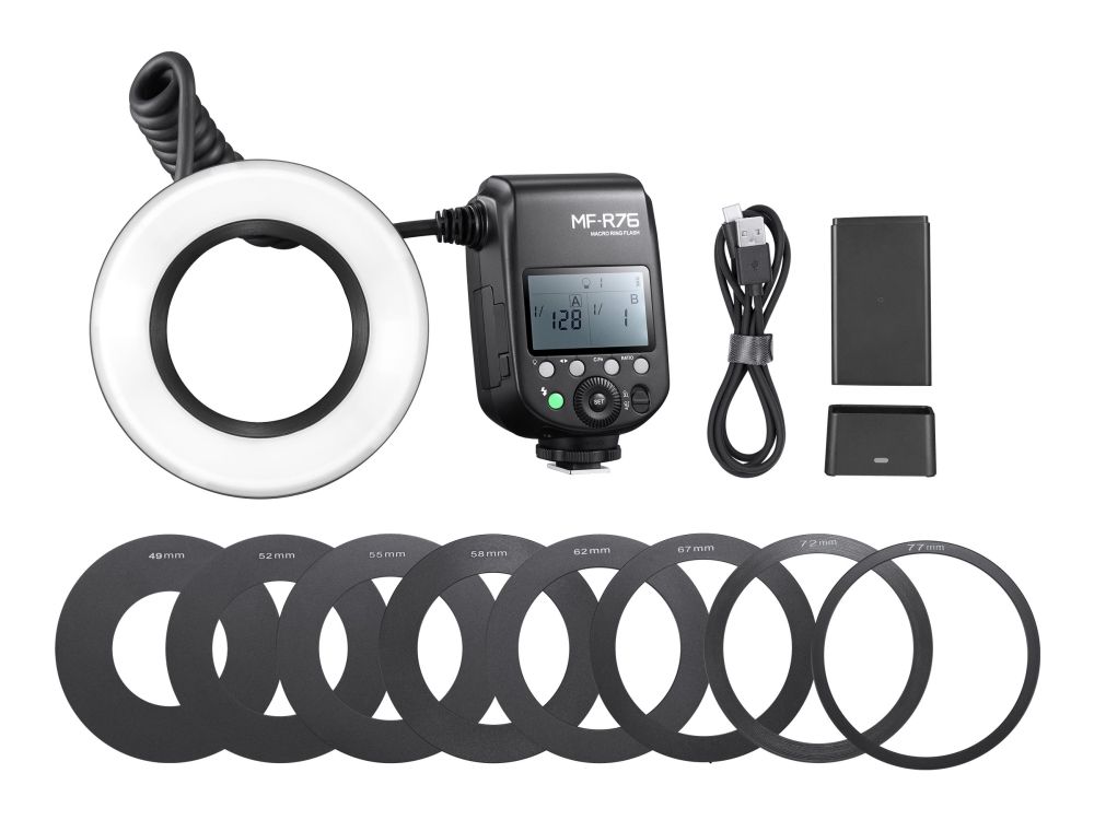 Godox MF-R76 - Hot-shoe clip-on blits med ring-type (makro) blits hoved - 14 (m)