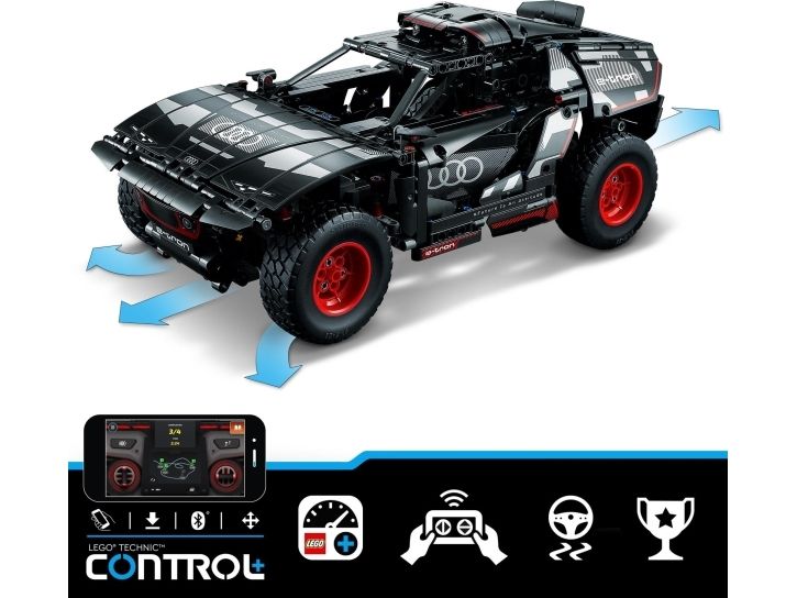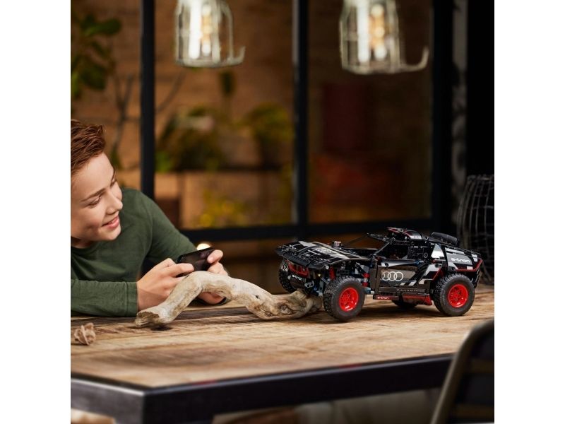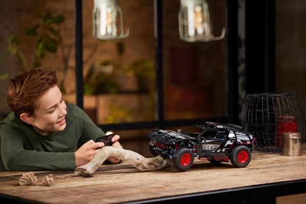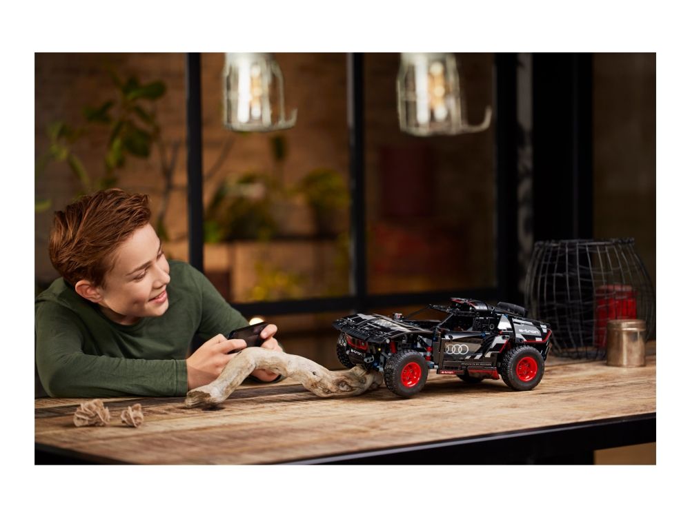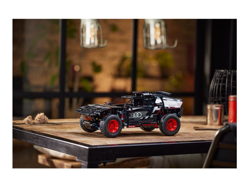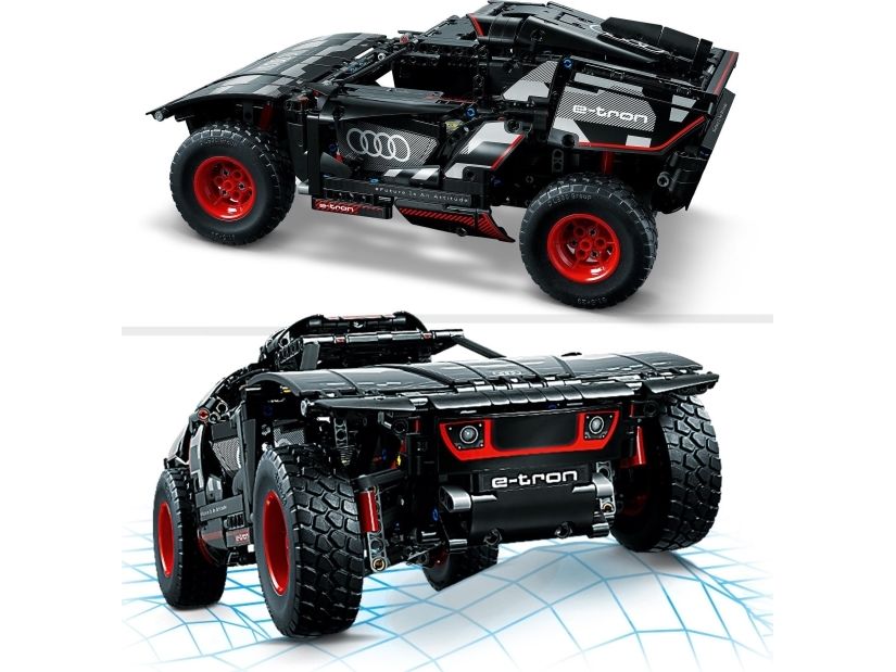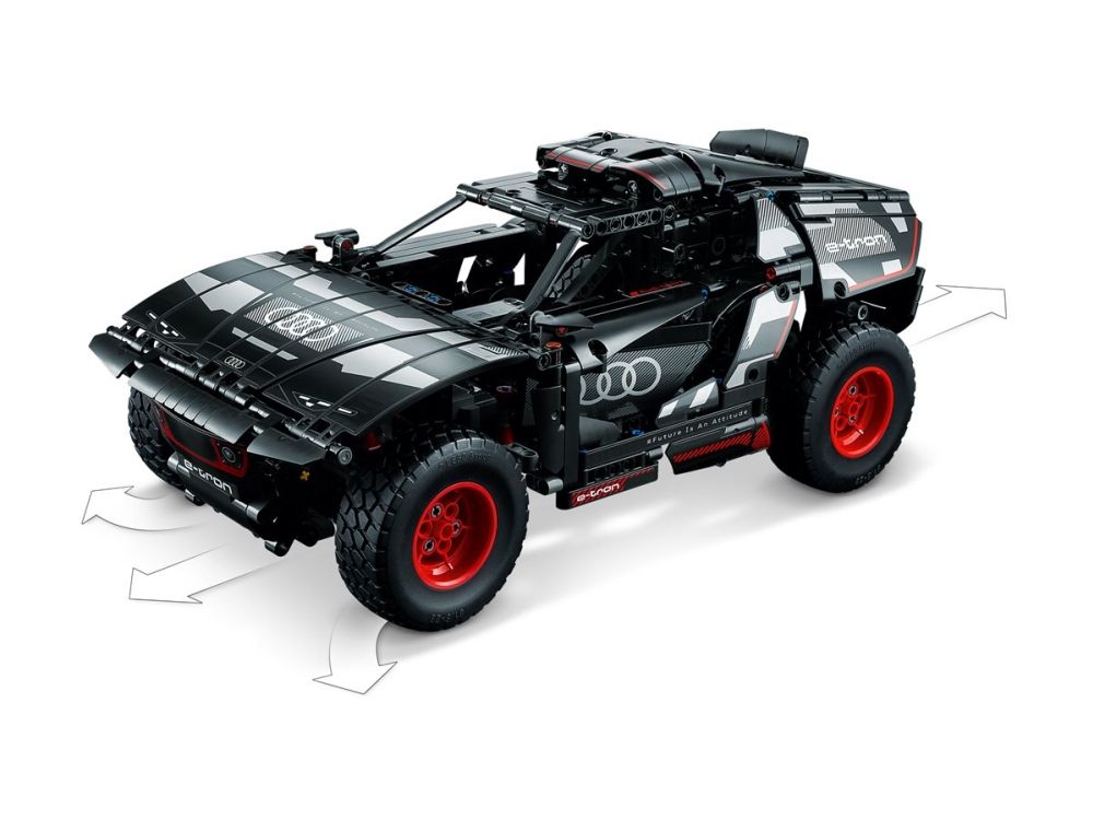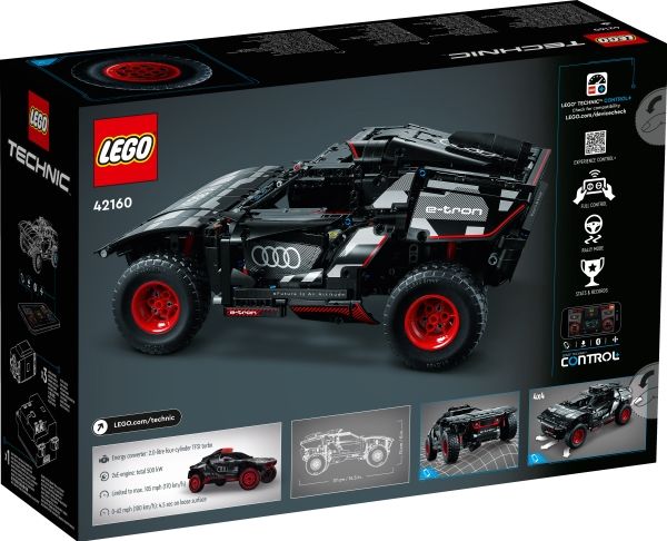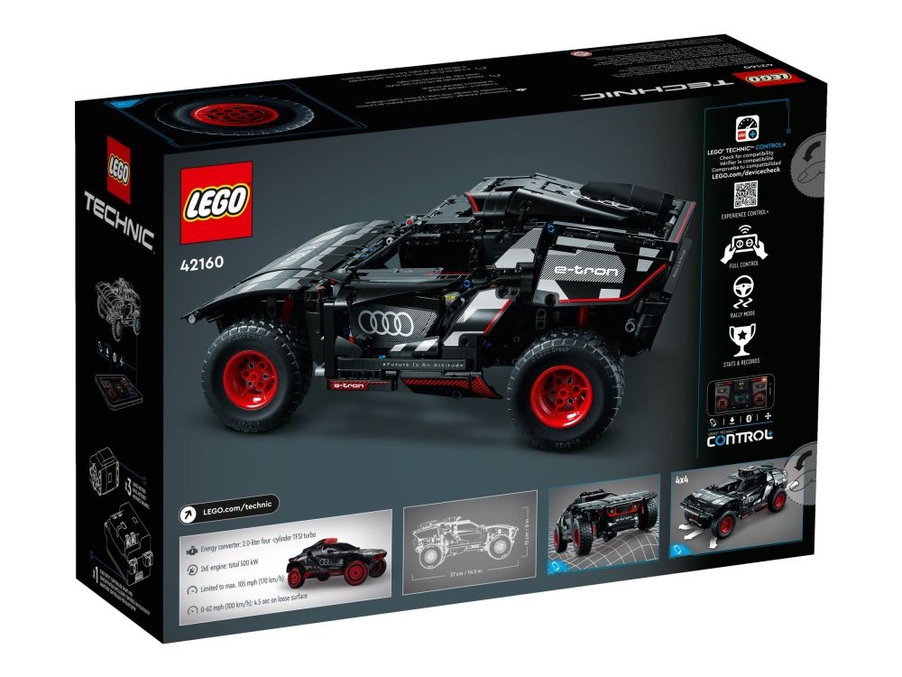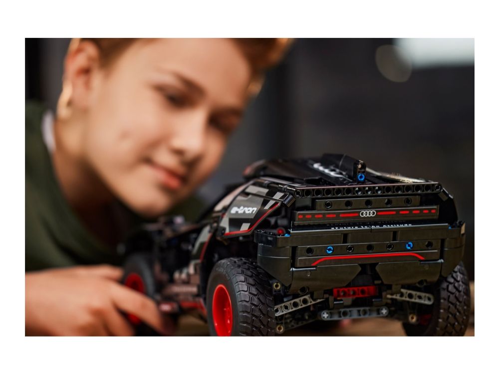 Med modellen LEGO® Technic Audi RS Q e-tron (42160) kan rallyinteresserte barn sette byggeferdighetene sine på prøve. Underveis i byggeprosessen får de en forståelse av funksjonsmåten til den virkelige elbilen som Audi designet til de krevende ørkenforholdene i Rally Dakar. Modellen har mange realistiske detaljer, inkludert uavhengig demping på alle fire hjul. Den har også et nytt Technic hjulelement som ble designet spesielt for denne modellen, og som gjenspeiler originalens hjuldesign.