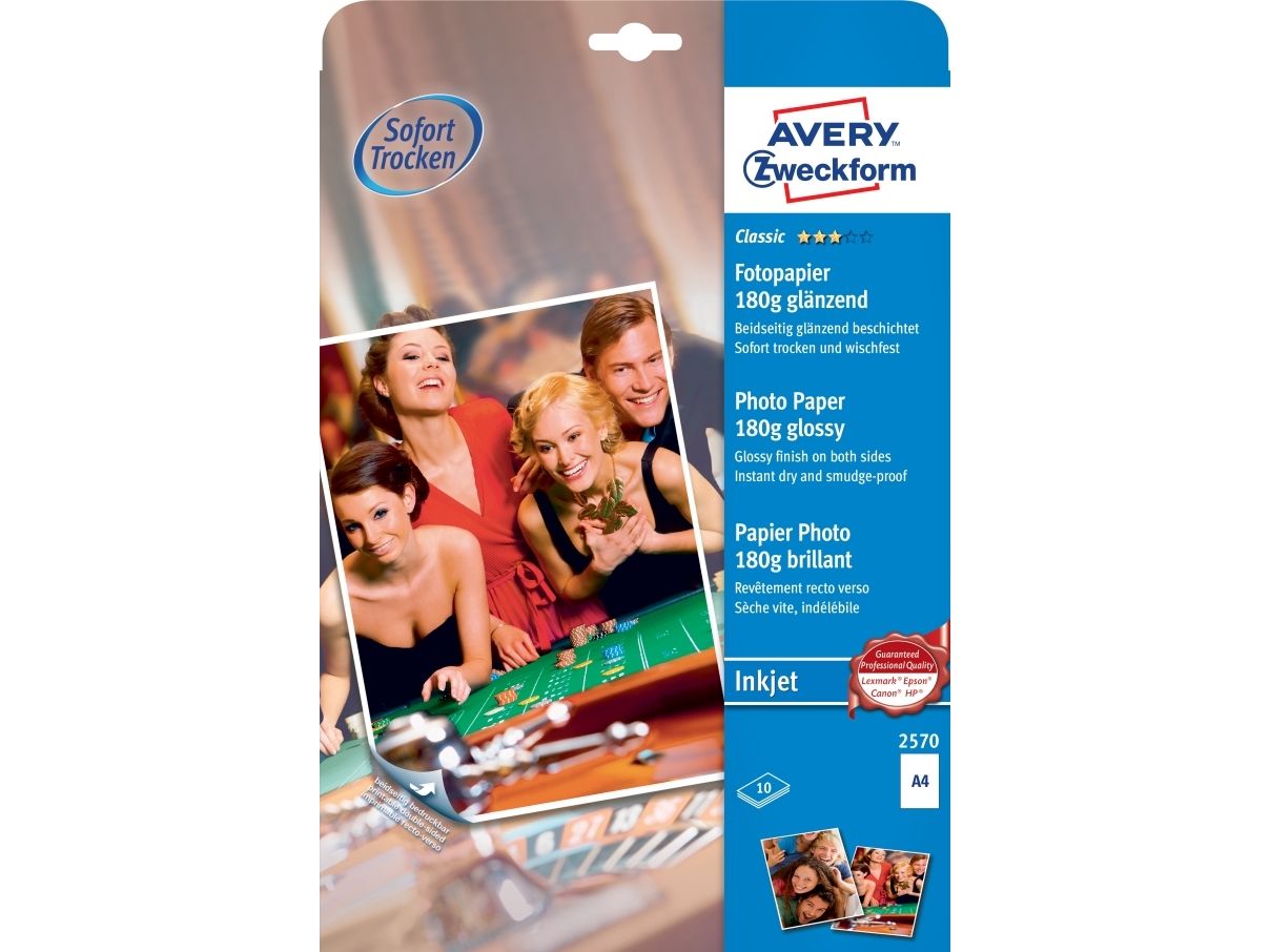 Avery Premium Instant DRY 2570 - Glanset - hvit - A4 (210 x 297 mm) - 180 g/m² - 10 ark fotopapir