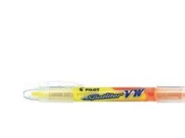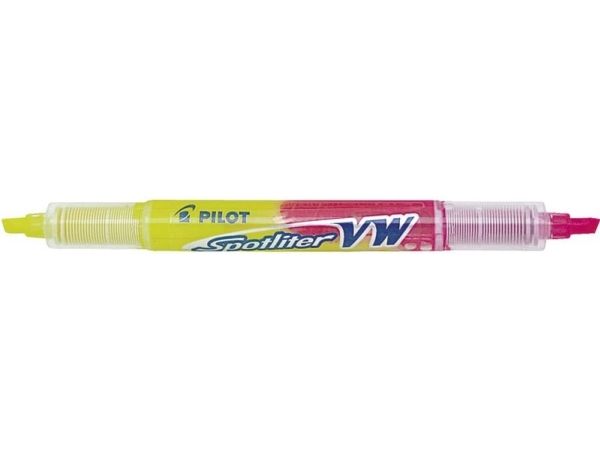 STATEN OG KOMMUNERNES INDKØBSSERVICE A/S Highlighter, Pilot BeGreen Spotliter. Smart dobbelt highlighter 2-i-1 med flydende blæk og synlig blækstand. Highlighteren indeholder 50 % gul og 50 % pink blæk, og blækket tørrer ikke ud. Fremstillet af 78 % genbrugsplast. Markeren har 3,3 mm stregbredde. Best.enhed: stk. Kolli a 10 stk. Yderkarton a 100 stk.