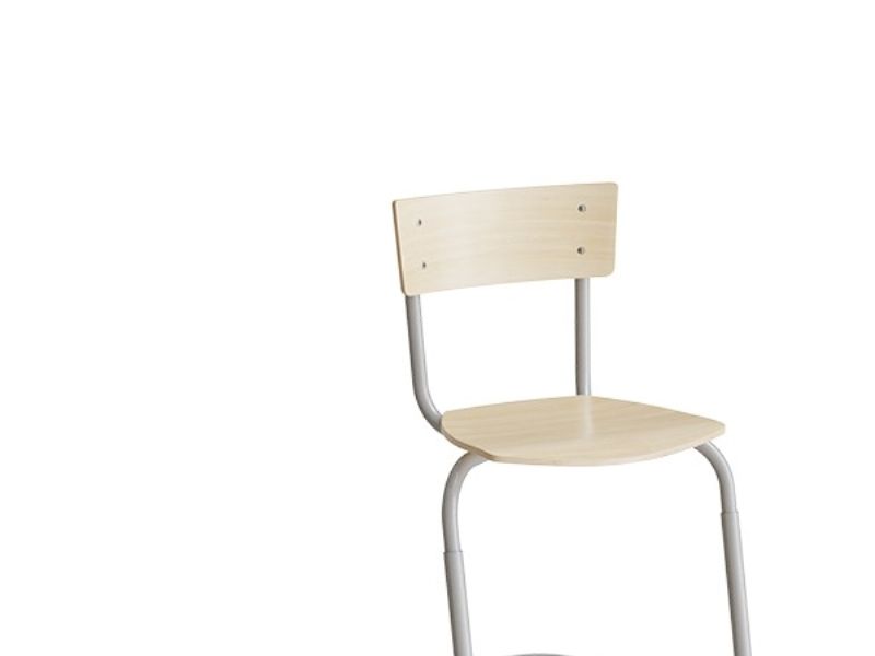 Stol Strong 271, justerbar med formpresset sæde og ryg, belagt med birk laminat. Lakeret stålstel. Justerbar siddehøjde i 3 cm intervaller. Levereres med filt gulvbeskyttelse som standard for bedste lydmiljø. Tilpasset til indskoling-/mellemtrinnet.