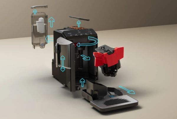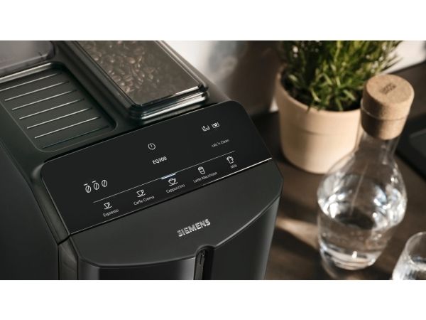 Discover the Siemens EQ.300, a freestanding automatic coffee machine that brings the cafe experience into your home. With the ability to brew a wide range of beverages from cafe creme to latte macchiato, this machine caters to all coffee lovers. The Siemens EQ.300 is not just about variety; it's about delivering a great cup every time. Thanks to its integrated BRITA water filter technology, adjustable grinding degree, and the innovative iAroma System, every beverage is a masterpiece of flavor and aroma. The machine's features are convenient, featuring an automatic cleaning program, dishwasher-safe components, and an easy-to-use LED display. Whether you prefer coffee beans or ground coffee, the Siemens EQ.300's ceramic grinder and 15 bar pressure ensure your coffee is always fresh and delicious. With a 1.4-liter water tank and a 250 g coffee bean container, it's ready to handle any coffee demand. Embrace great coffee flexibility and quality with the Siemens EQ.300.