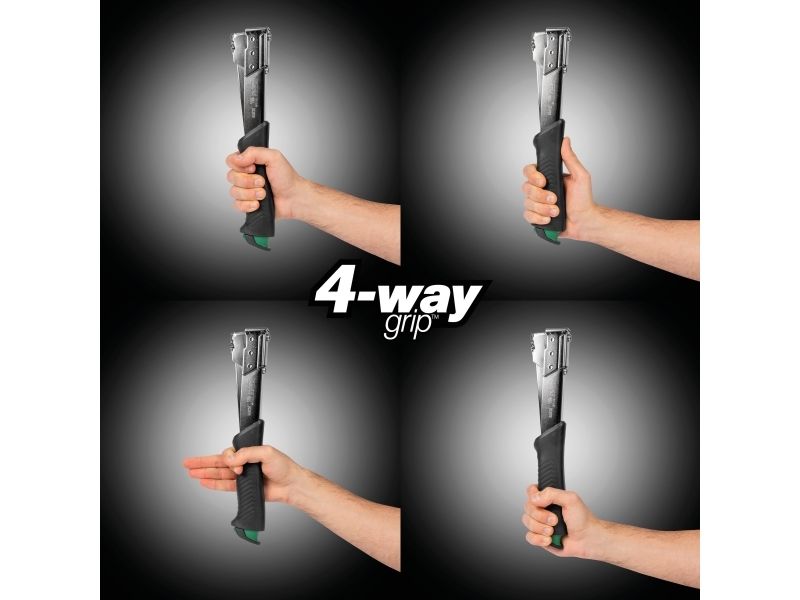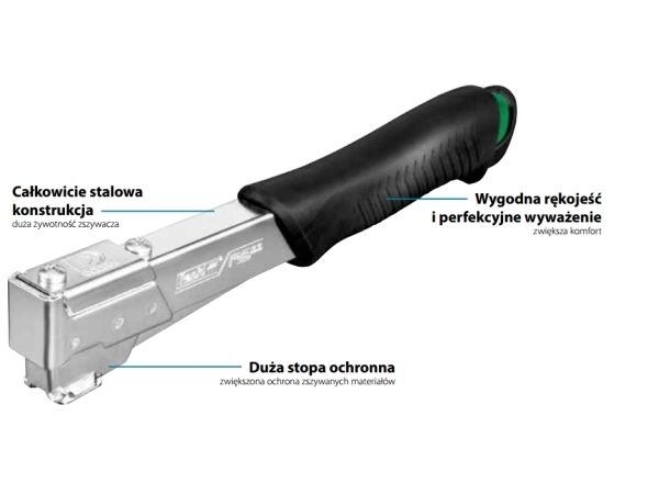 Hæftehammeren til rigtige fagfolk. Hurtig bundladning, magasinet åbnes med et let tryk. Komfortabelt greb og perfekt balance. Velafbalanceret og med ergonomisk håndtag sikrer mindre træthed. Vendbart stempel giver ekstrem lang holdbarhed. Anvendelses områder: tagpap, dampspærre, plastfolie, isolering, m.v.